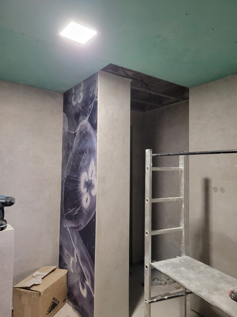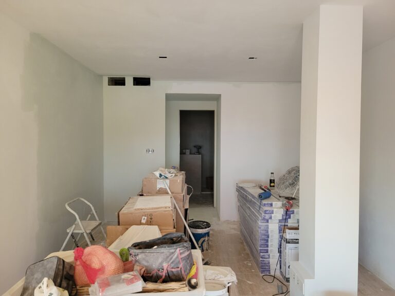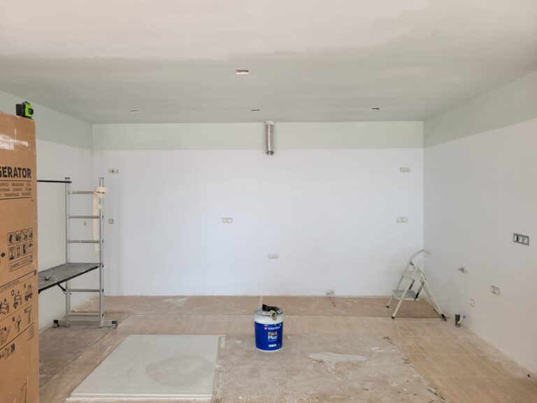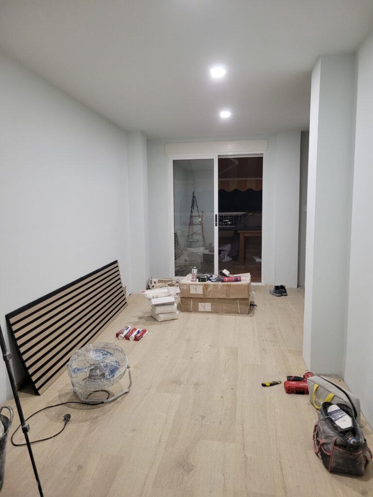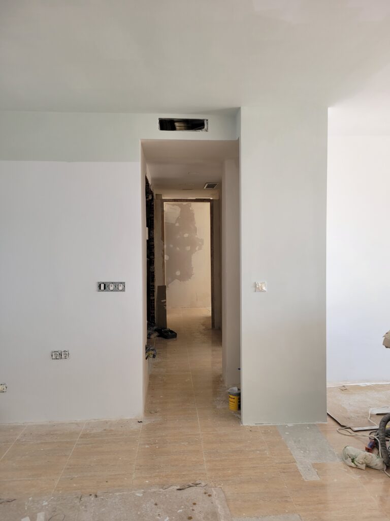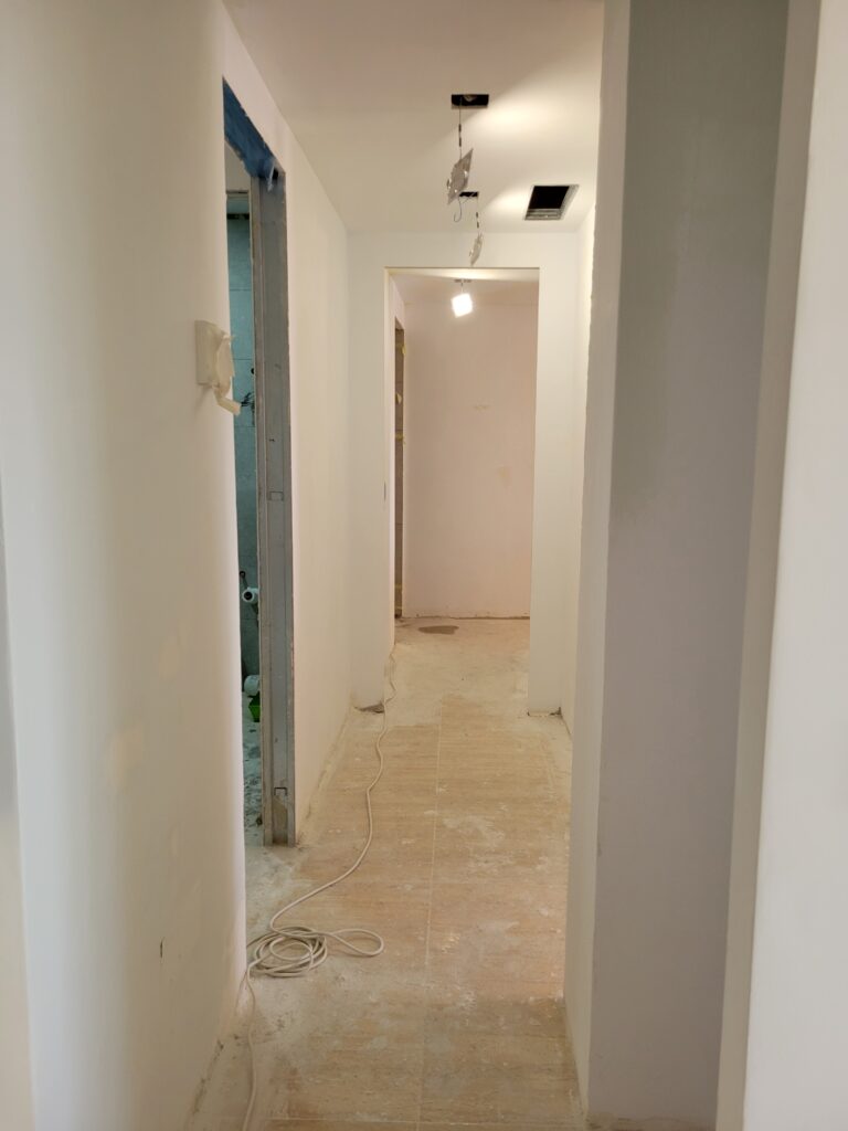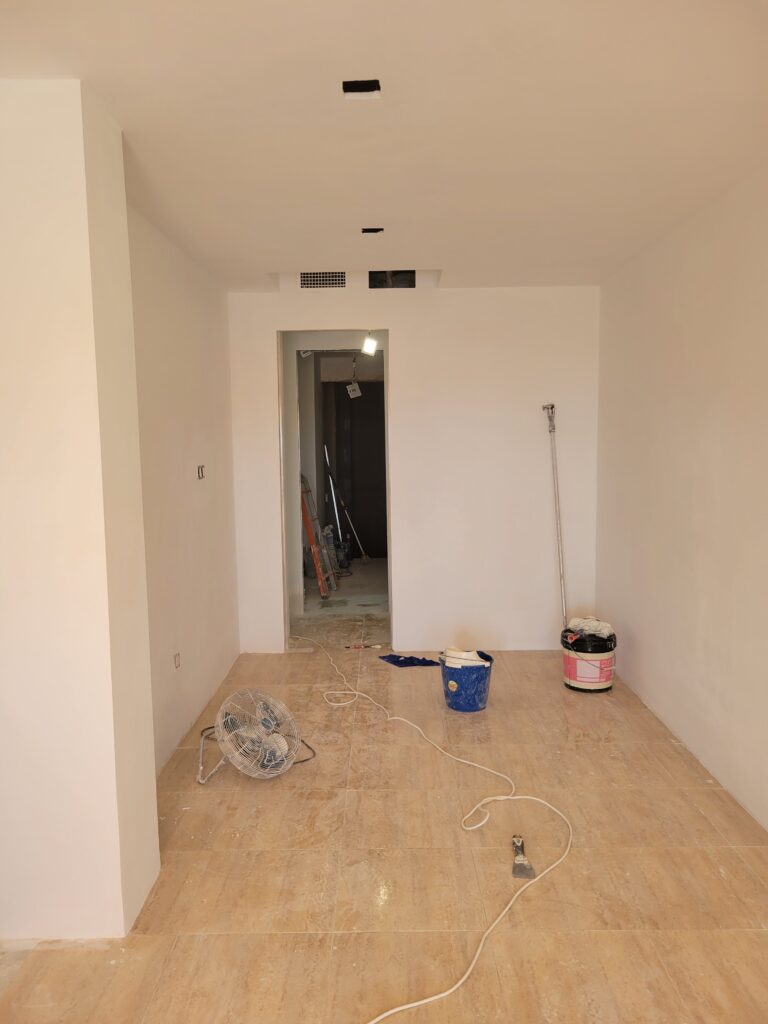 – Ceilings and walls were meticulously smoothed, textured finishes eliminated, and surfaces expertly prepared for painting, ensuring a pristine, modern finish.