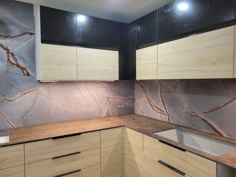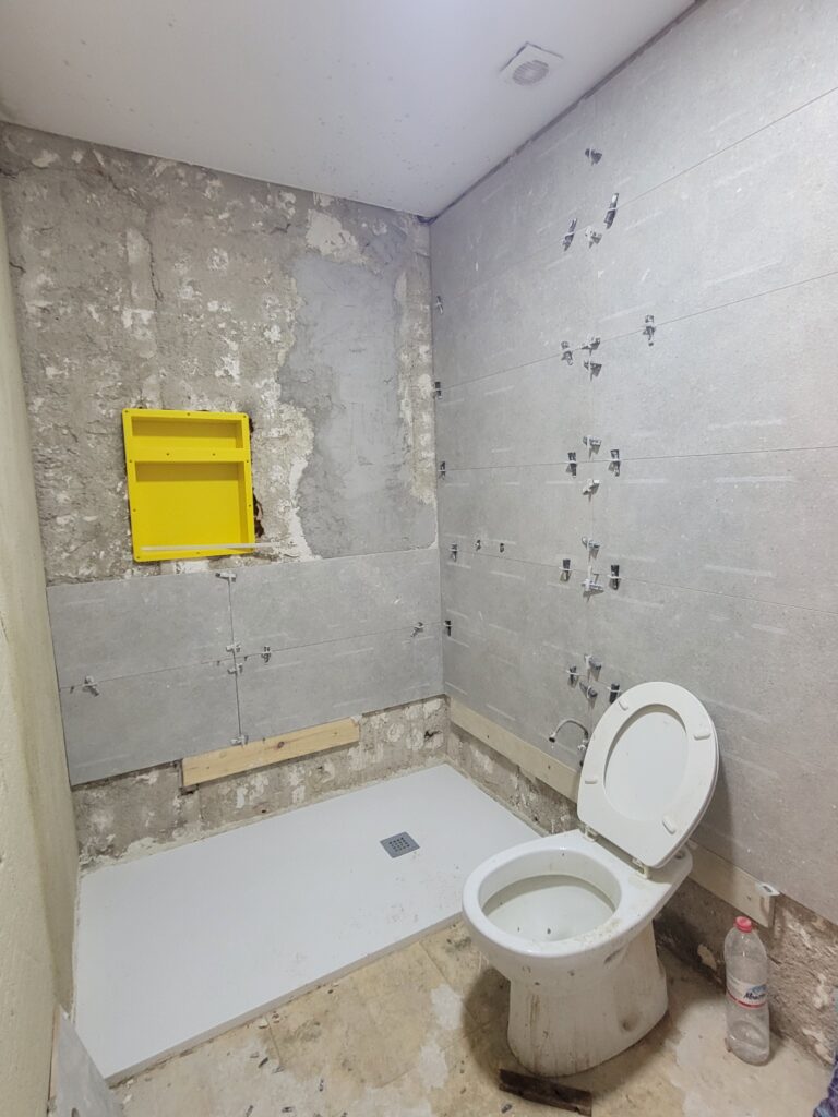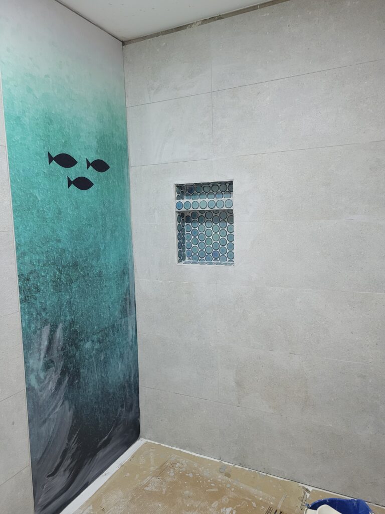 We stripped it back to bare walls and handled every detail: full demolition, plumbing and electrical upgrades, modern wood-look flooring, premium matte green light- paint, recessed LED lighting, a sleek walk-in shower bathroom with grey tiles and matte black fixtures, plus a stylish handleless kitchen in white and grey – elevated with a stunning minimalist marble backsplash featuring subtle gold nugget accents for that extra touch of luxury.